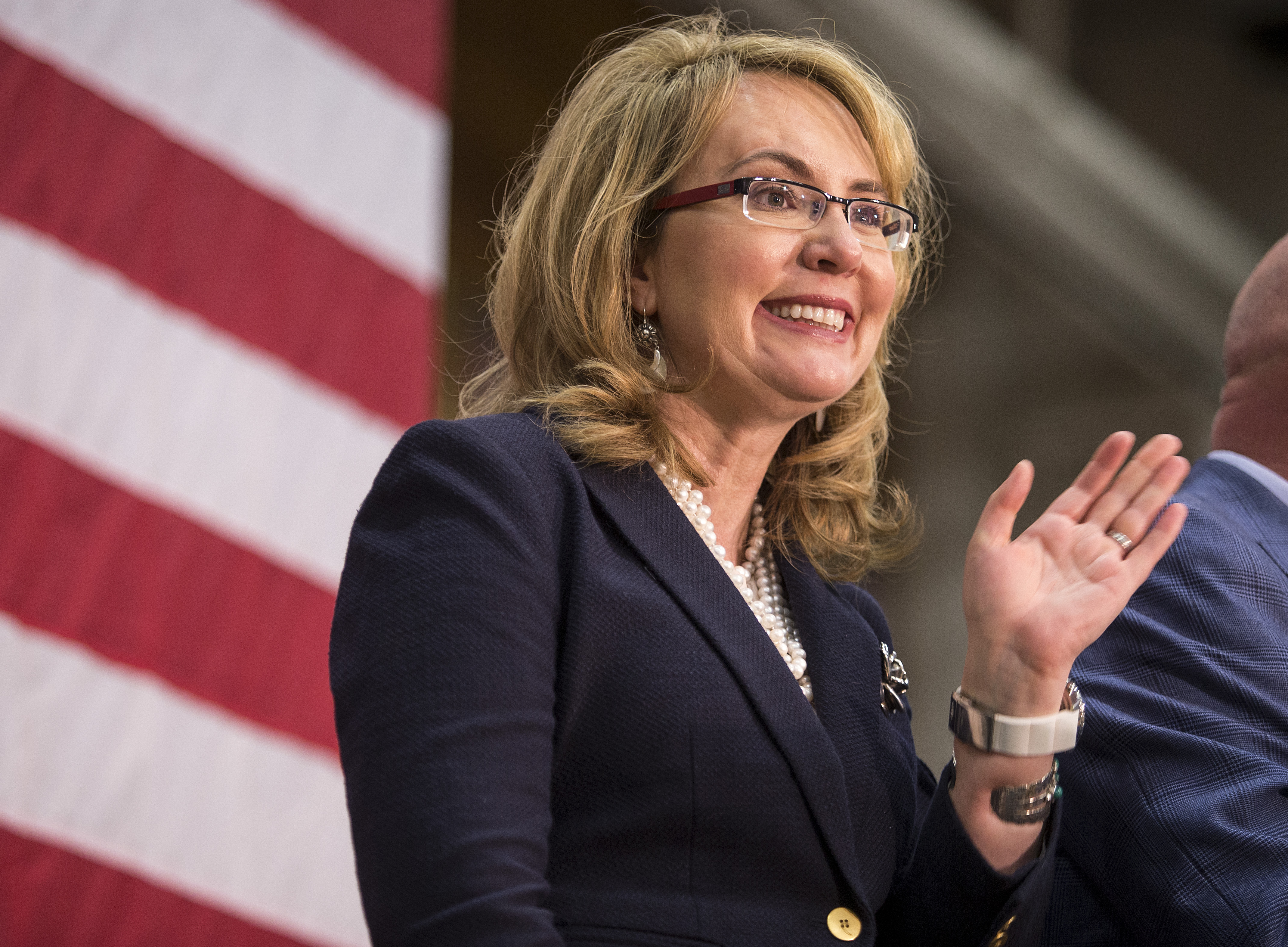 Gabrielle Giffords speaks during a campaign stop for Democratic presidential candidate Hillary Clinton at Central High School in Phoenix, Arizona, on Sunday, March 20, 2016.